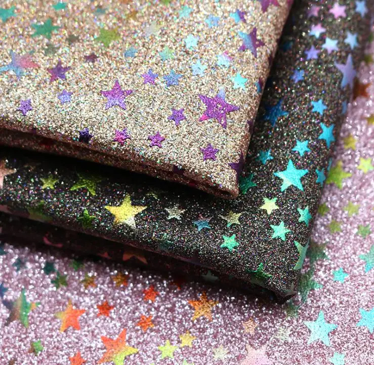 Name | Star Pattern Holographic Super Sparkling Sheet Canvas Back synthetic printed leather for Making Shoe/Bag/Craft |